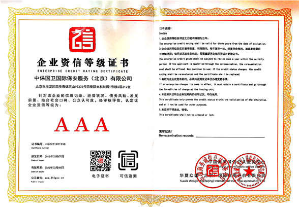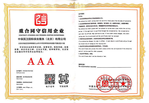 中保國(guó)衛(wèi)國(guó)際保安服務(wù)(北京)有限公司,屬中保國(guó)衛(wèi)集團(tuán)旗下子公司。能全方位的為大型客戶提供優(yōu)質(zhì)的安保、押運(yùn)服務(wù),是集人防和技防于一體的新型正規(guī)化綜合安保押運(yùn)服務(wù)企業(yè),提供人防、物防、技防、聯(lián)網(wǎng)報(bào)*、非武裝押運(yùn)等安防相關(guān)的一站式服務(wù)。 公司在國(guó)內(nèi)多省設(shè)立有分公司及分支機(jī)構(gòu),著重提升安全押運(yùn)、智能技術(shù)押運(yùn)及安全技術(shù)防范相關(guān)的服務(wù),業(yè)務(wù)范圍覆蓋全國(guó)一、二線城市、港澳地區(qū)以及海外地區(qū)。安保方面主要為政府機(jī)構(gòu)、金融機(jī)構(gòu)、企事業(yè)單位、醫(yī)療衛(wèi)生、高等院校、工業(yè)園區(qū)、大型商場(chǎng)、高檔住宅、智能商務(wù)樓、大型活動(dòng)提供門衛(wèi)、守護(hù)、巡邏、押運(yùn)(非武裝)、安全檢查、保安特勤、私人護(hù)衛(wèi)、消防中控、安全技術(shù)防范、遠(yuǎn)洋護(hù)航等全方位服務(wù),同時(shí)面向國(guó)際市場(chǎng),為中資企業(yè)在“一帶一路”沿線國(guó)家投資提供境外安保服務(wù)。 |
